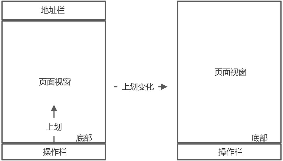 某些浏览器行为(如上图),比如上划到底部后,继续上划,浏览器地址栏会消失,此时视窗大小会发生变化
